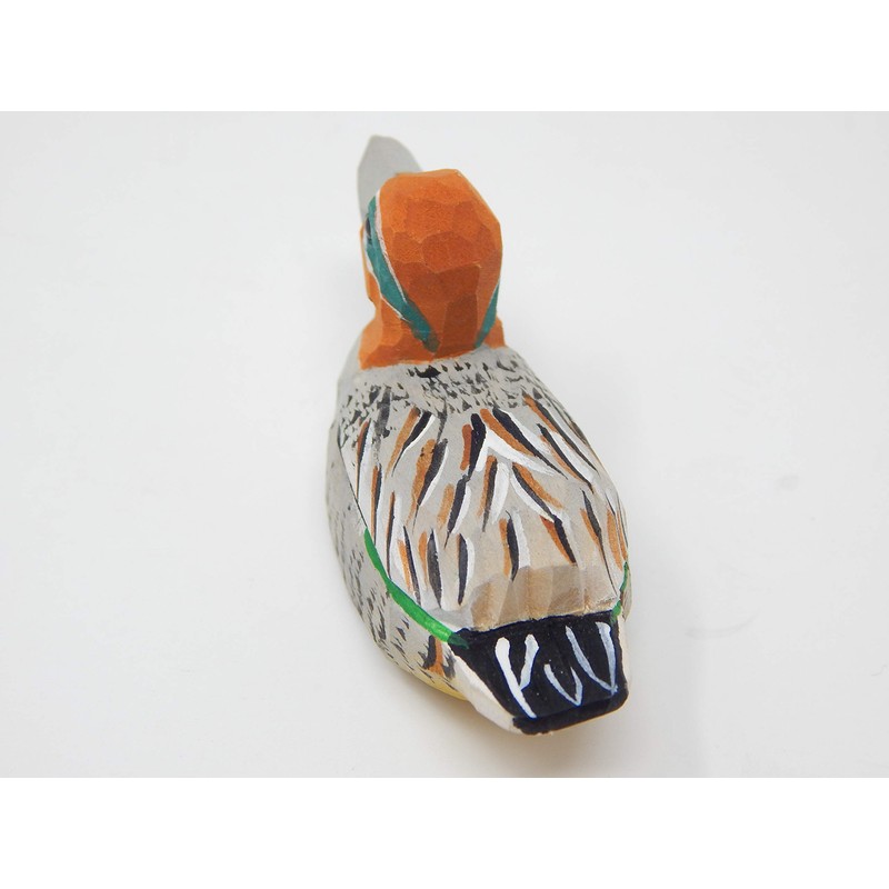Selsela Eurasian Teal Wooden Duck Figurine - Miniature Bird Statue Handmade Carving Home Decor Decoration Decoy Small Animals
