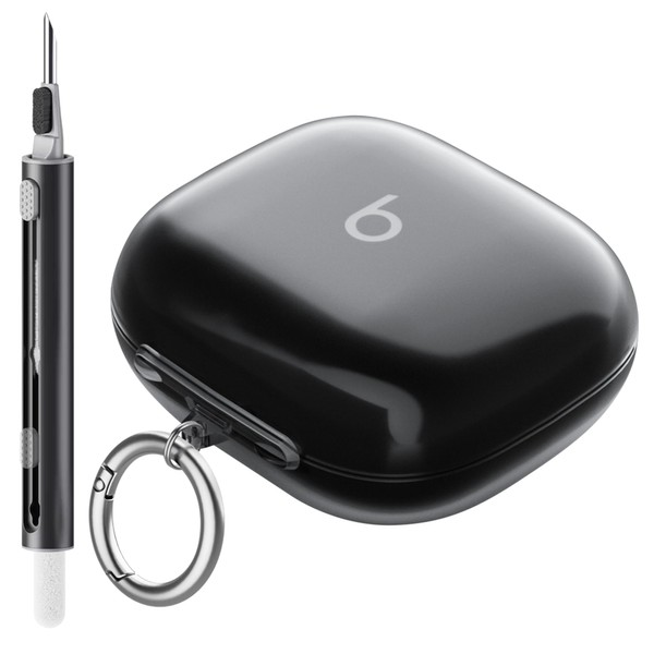 Seltureone Compatible with Beats Powerbeats Pro 2 Case with Cleaning Kit and Carabiner, High-Transparency Soft TPU Protective Case Cover Compatible with Powerbeats Pro 2 - Transparent Black