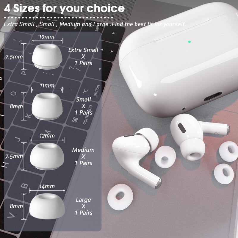 - Package contents: 1 pair of large, 1 pair of medium, 1 pair of small and 1 pair of extra small Airpods Pro/Airpods Pro 2nd generation ear tips. Quipped with a storage box for storing earplugs.