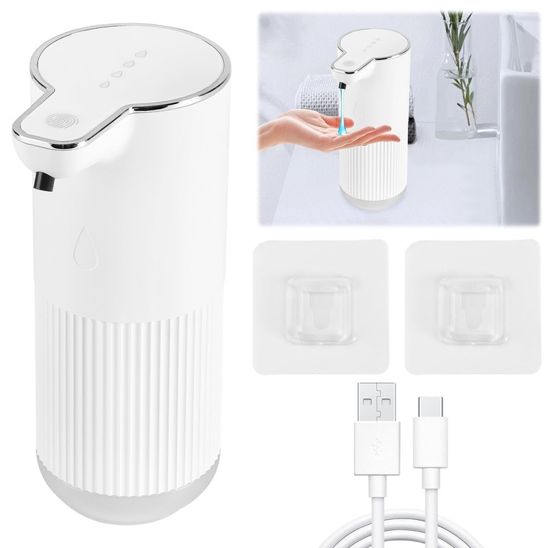 SelWatty Dispensador de Jabón Automatica, 350ml, Dosificador de Jabón con Sensor Inteligente, Inducción Infrarroja, Dispensador de en Espuma, 4 Niveles Ajustables para Baño, Cocina, Hotel (Gel)
