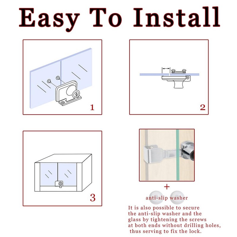 - Wide range of applications: ideal for glass doors, showcases, shop windows, reptile housings, tool boxes, mailboxes and furniture. Suitable for glass thickness of 5-8mm, perfect for retail, trophy cases and private collections.