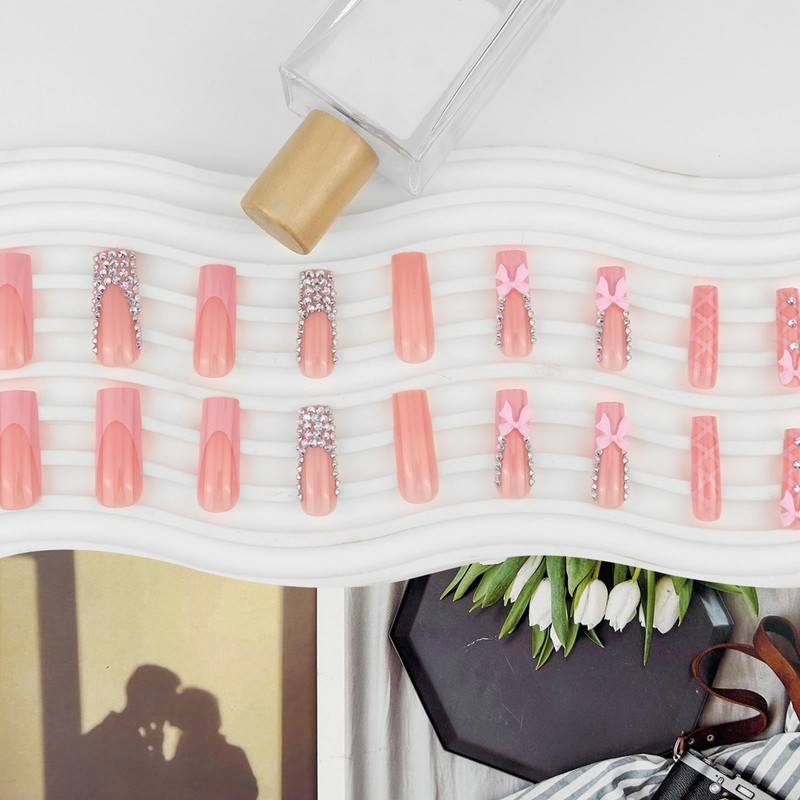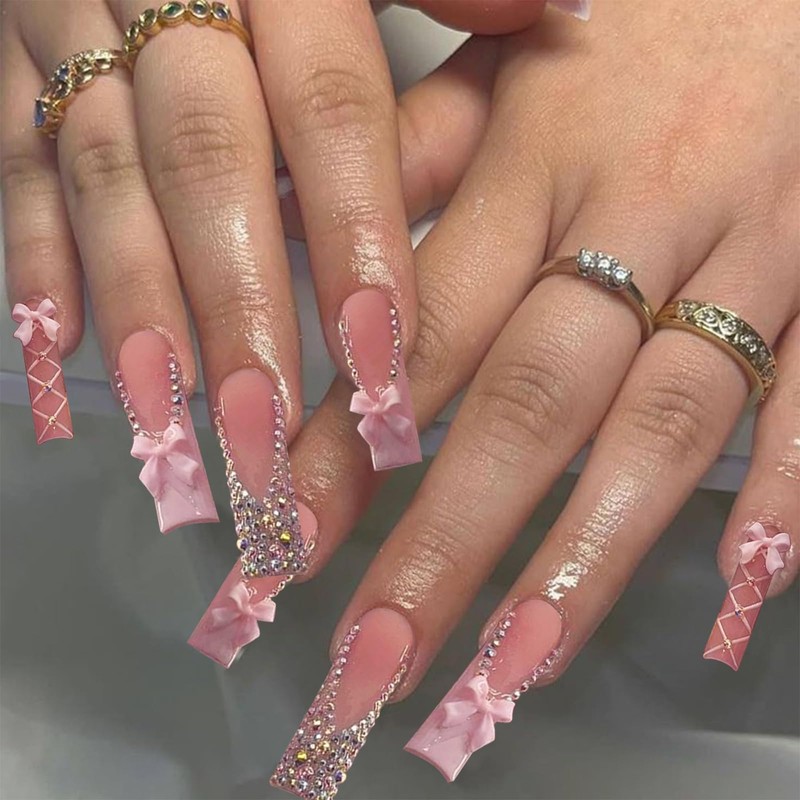 - 【Exquisite Styles】Our nails press ons have a variety of elements, including bows and rhinestone decorations, giving you a cute and exquisite nail design.