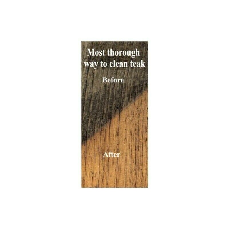 - It deep cleans teak without harsh scrubbing to remove graying, fish blood, fuel stains and teak oils.