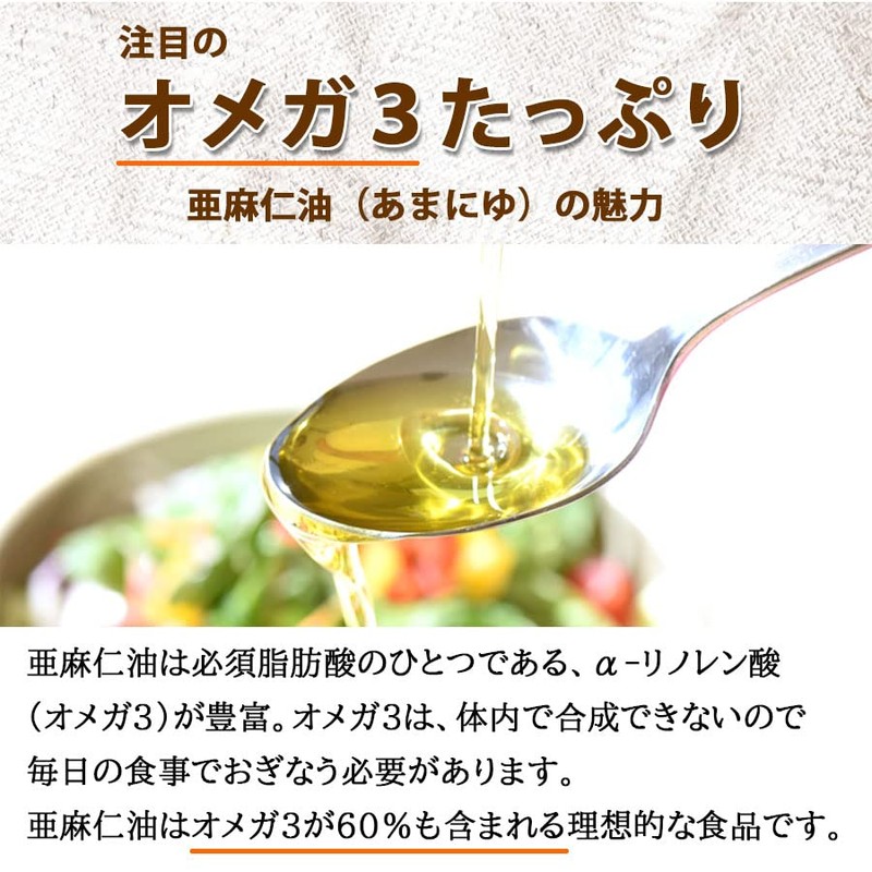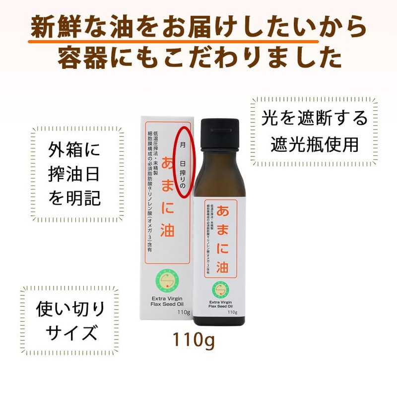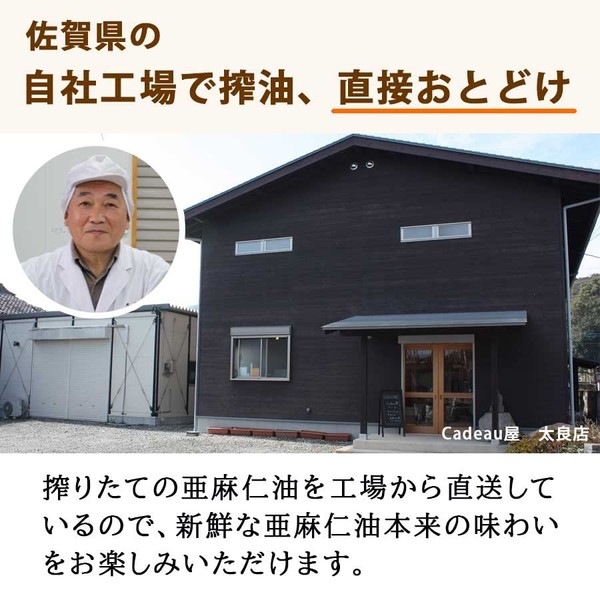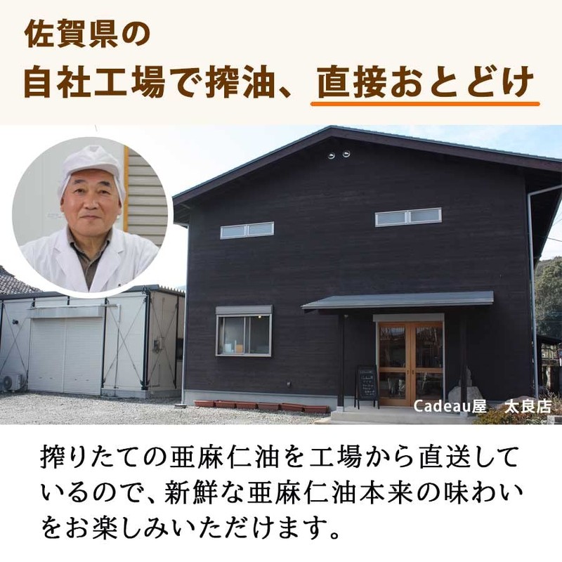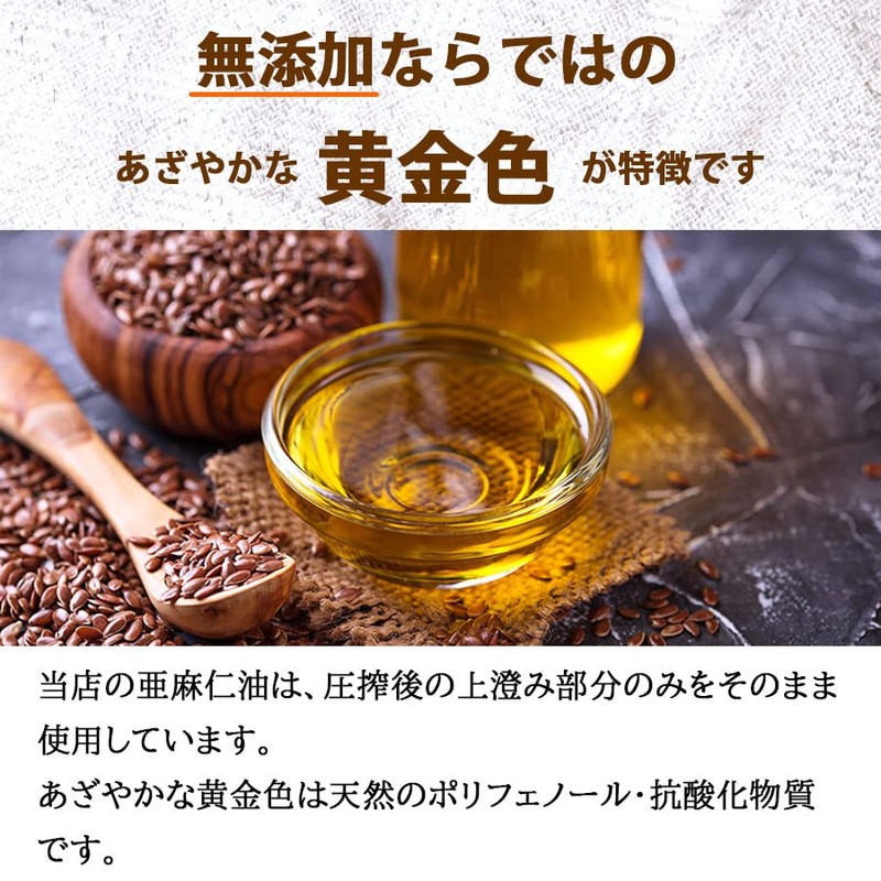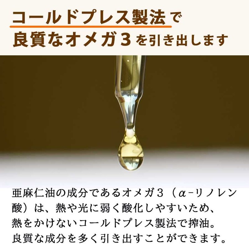 Uses a cold pressure method to squeeze out raw flax seeds and squeeze out oil. In addition, the oil that is easy to oxidize is delivered to you in a way that stays fresh and
