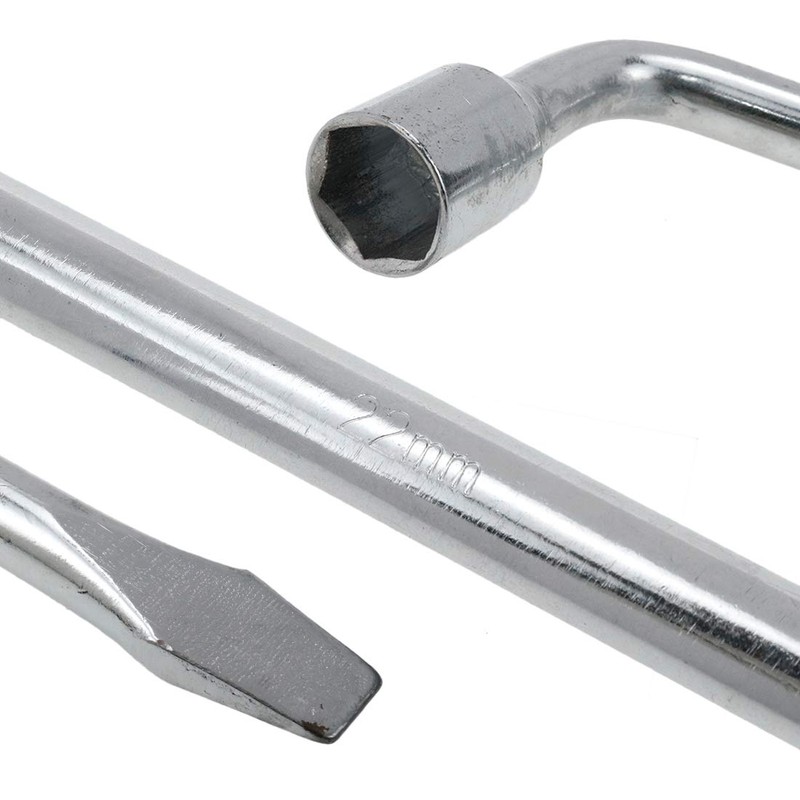 Semetall 22mm Car Spare Tire Lug Wrench,Slotted End Socket Repair Tool,Tire Replacement Tool (Silver)