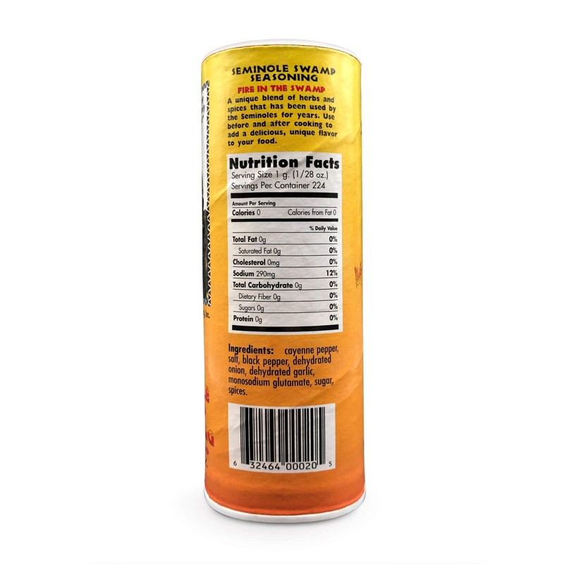 If it flies, walks, swims, crawls or grows in the ground, this is the seasoning to kick it up a notch and be the talk of the meal. Created from the legacy of two Indians and tweaked by the tribal medicine man deep in the Florida swampland's, Seminole Swamp Seasoning has grown to be an essential ingredient in creating a distinctive one of a kind flavor. A unique blend from an old Seminole Indian recipe of cayenne pepper, salt, black pepper, garlic, monosodium glutamate, spices and a touch of sugar that brings out the best of the authentic Florida seasonings to your cooking