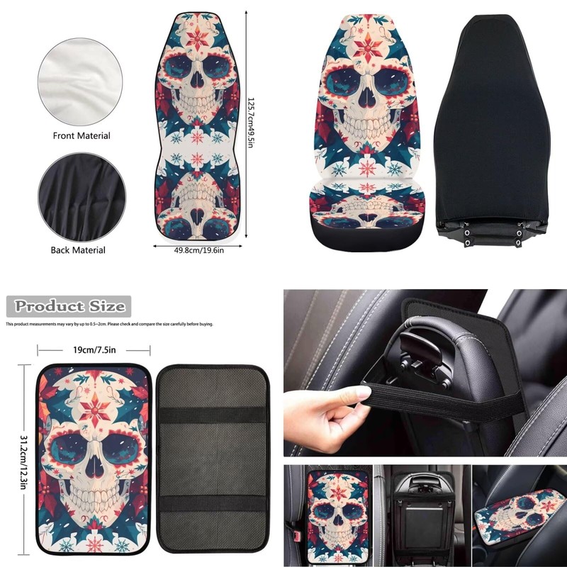 Semiouray Skull Gothic Painting 11 Pieces of Pattern Car Seat Covers Halloween Skeleton Flower Pattern Car Seat Covers Full Set Universal Size for Car, Truck or SUVs