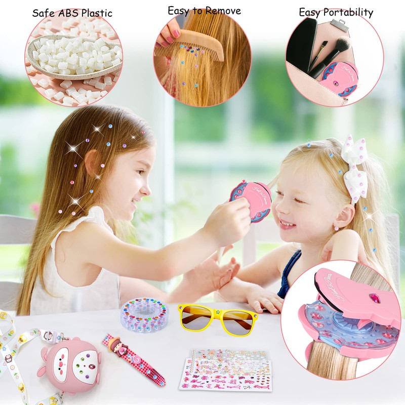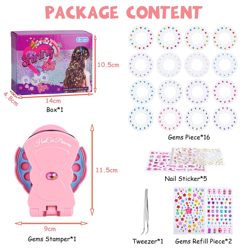 - ❊【Girls Gifts】Durable ABS material glam bling styling tool is a fun party craft. Children can spend quality time with personality jewel stickers DIY or belongings decoration. It exercises kids' imagination, exploration, hand-eye coordination. Unique hair gem stamper is special gifts for girls age 6. Let your little pretty princess enjoy sparkling look in the crowd!