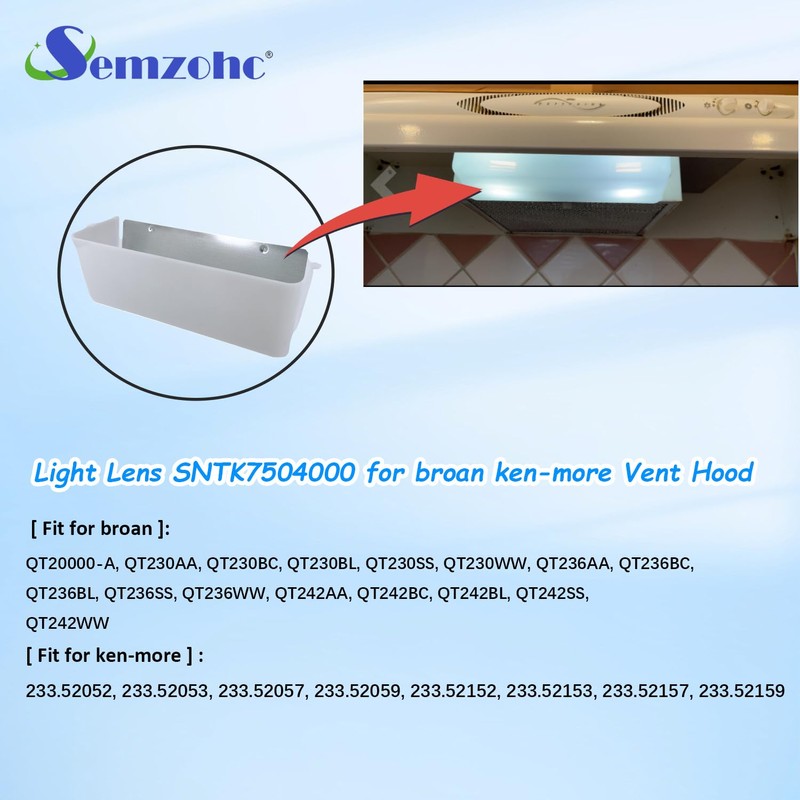 Semzohc SNTK7504000 Range Vent Hood Light Lens Replacement replaces SNTK7504000, K7613000, K7504000, K7613-000, NTK7504000, 949658, AP3378324 fit for Bro-an qt20000 & Ken-more Range Hood