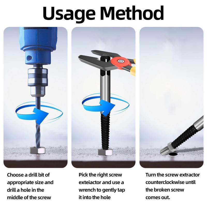 • 【Easy to use】 Square design makes the broken pipe extractor kit be electrically and manually rotated to easily remove the screws, screws, pins and threaded pipe stops. I just turned at low speed while using until the broken screw is removed