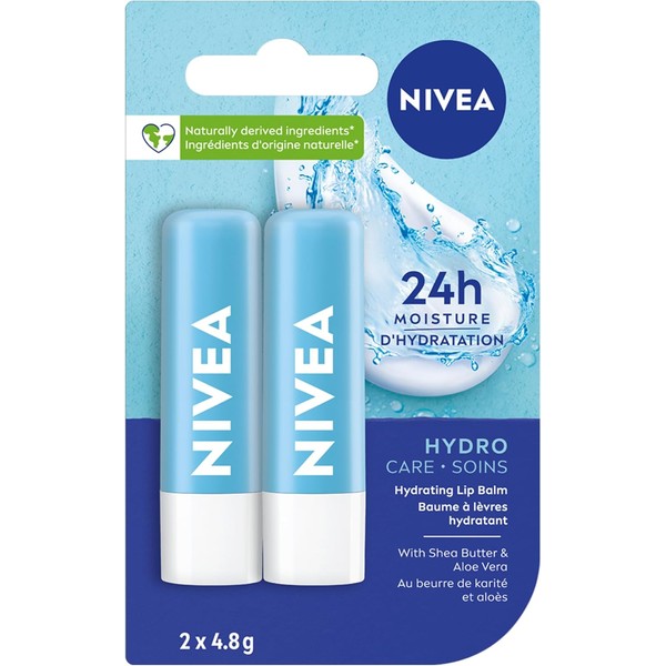 NIVEA Hydro Care Lip Balm, (2 X 4.8g) | Made with Aloe Vera & Shea Butter, 24H Hydration, Transparent