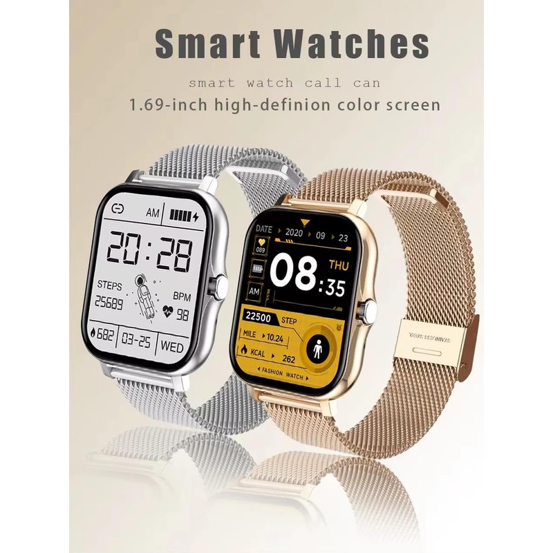 SEND UP Ultra-Thin Smart Watch 1.69 Inches Square Screen Bluetooth Call IP67 Waterproof Long Standby Smartwatch with Functions Heart Rate, Blood etc. (Gold)