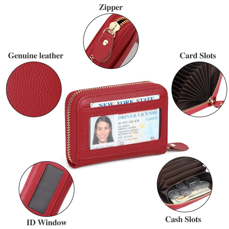 • Large Capacity: The wallets for women has 10 credit card slots, 2 cash slots and 1 ID window. The credit card slot and coin pocket are sufficient for everyday use. You can store credit cards, ID cards, photos, change