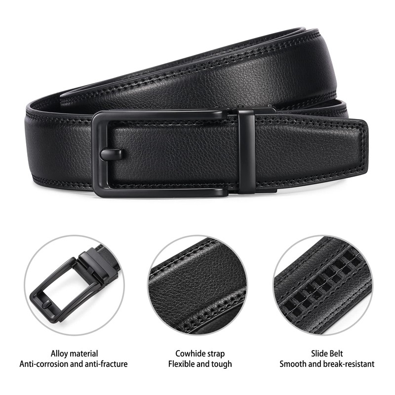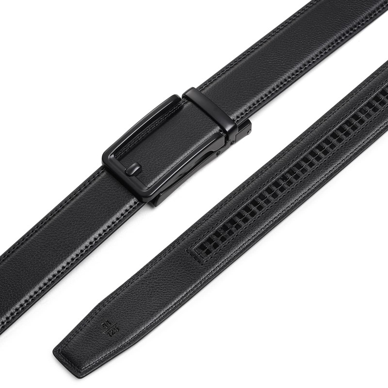 - Easy to use: slide the men's leather belt into the automatic buckle and the hole-less belt closes automatically. Lift the automatic ratchet buckle and the belt opens. A simple system for a stress-free everyday life. Simple, smooth and stylish