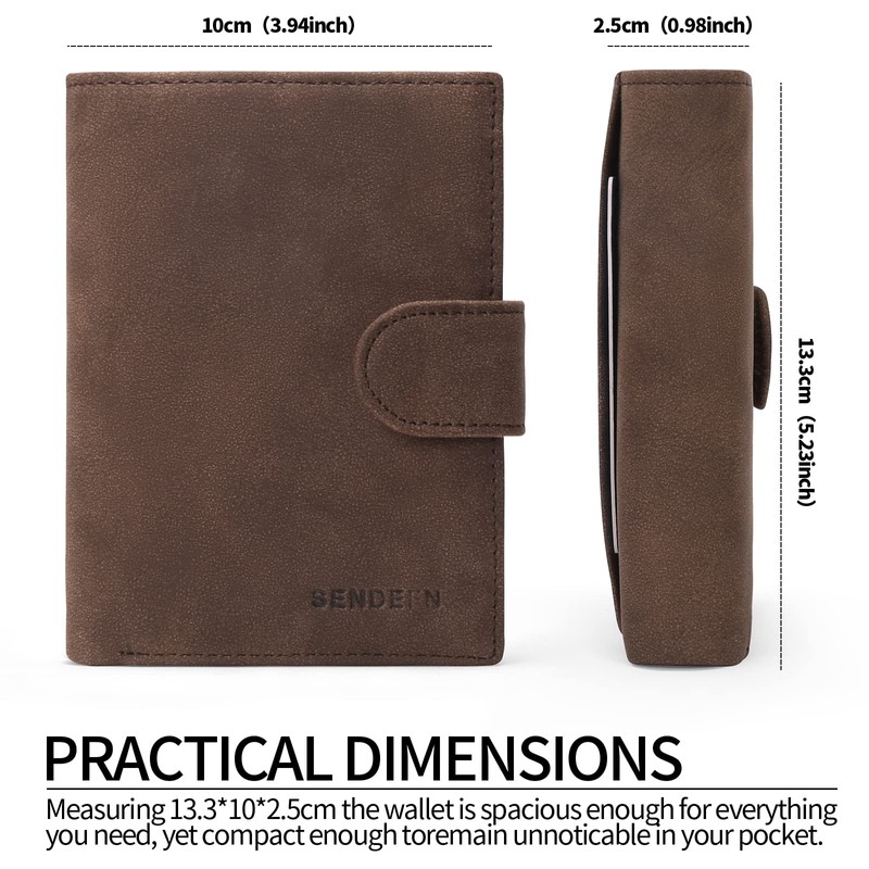 - Excellent workmanship: this men's wallet is made of high-quality genuine leather and detailed, streamlined seams. The smooth zipper and durable snap closure keep secure and comfortable. Dimensions: 13.3 x 10 x 2.5 cm.