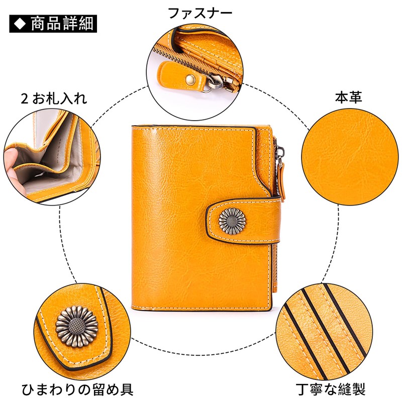SENDEFN Women's Bi-fold Wallet, Genuine Leather, Skimming Prevention, Coin Purse Included, Large Capacity, Multi-functional, Lightweight, Good Touch, Popular, Compact Wallet, B-yellow