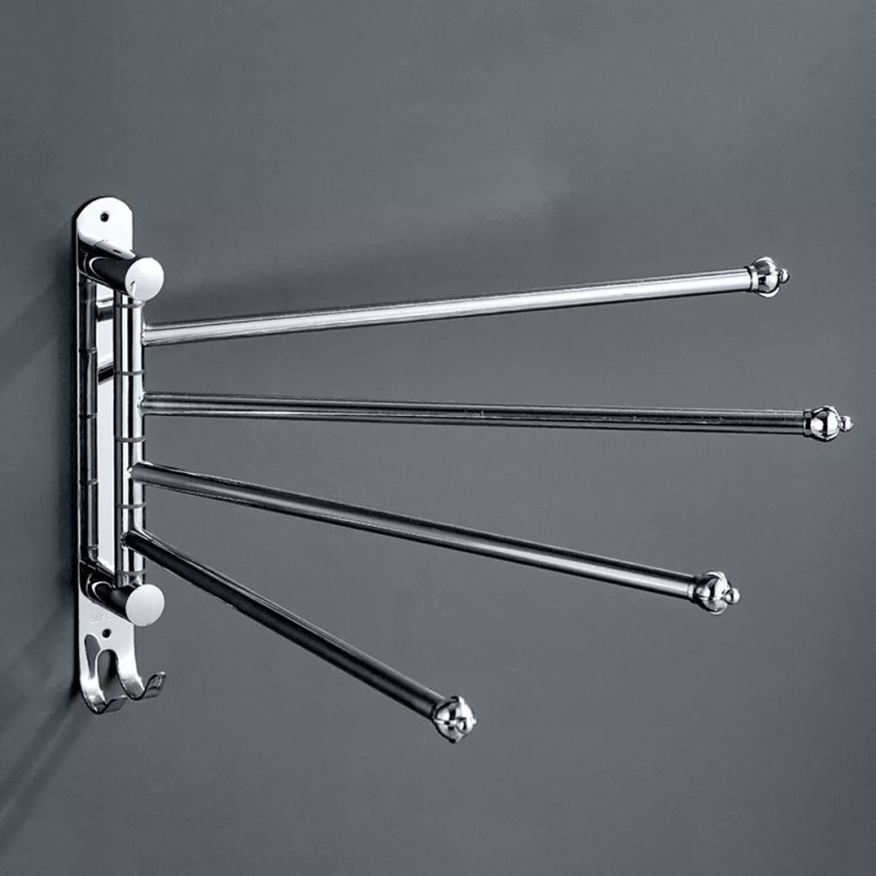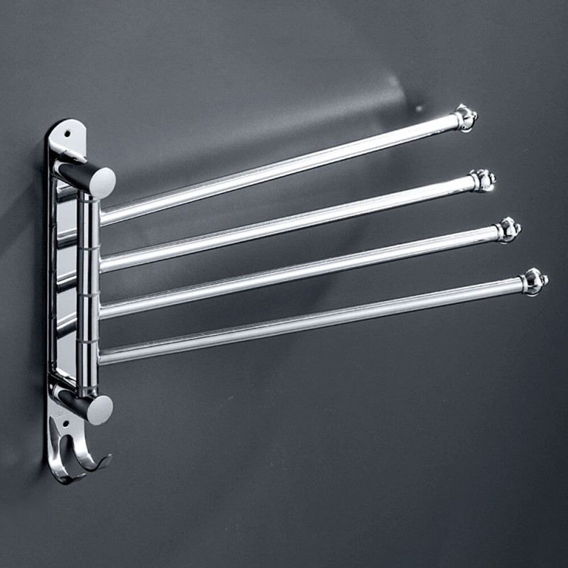 4-Arm Towel Bar Towel Rack Bathroom Towel Swivel Wall-Mounted Tower Shelf Hanger