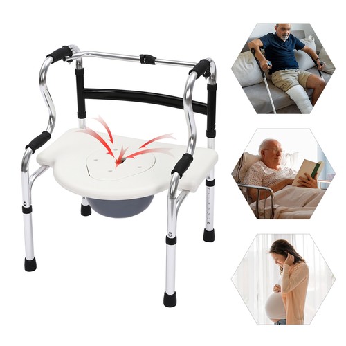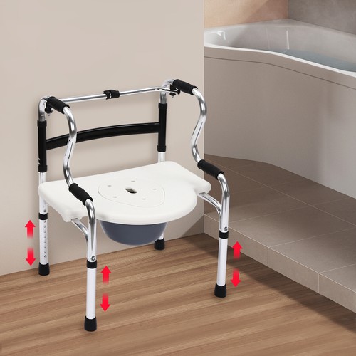 SENDERPICK 6-in-1 Shower Chair Adjustable Bedside Commode Chair Toilet Seat Non-Slip 220lbs