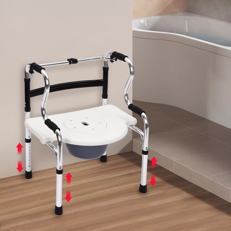 6-in-1 Design: It is used not only as a shower chair but also as a folding walker, bedside commode chair, standing aid, toilet safety frame, and raised toilet seat, meeting your different needs.