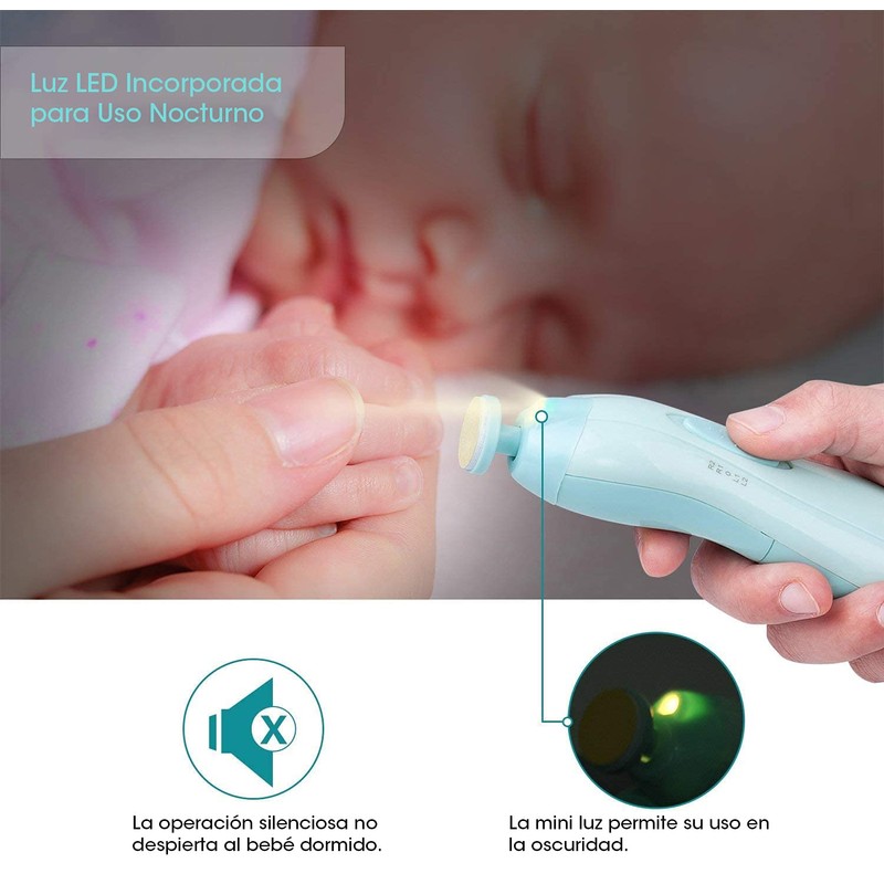 - 👼 【Diseño Perfecto】Esta lima de uñas para bebés incorpora una luz frontal LED suave que te ayudará a usarla en la oscuridad. El kit para el cuidado de las uñas está equipado con un motor silencioso. Puede recortar cómodamente los dedos de los pies y las uñas sin despertar al bebé que duerme (Menos de 60 dB). ¡Incluso si el bebé está despierto, no causarás molestias ni temerás por él! Puede recortar fácilmente las uñas del bebé incluso durante la noche, teniendo en cuenta la seguridad del bebé.