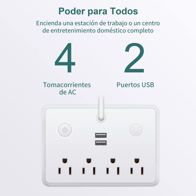 - 4 Salidas y 2 Puertos USB: Regleta estándar de EE. UU. (1100W, 10A). 4 salidas de AC y 2 puertos USB (5V, 2A). Certificado por la FCC/UL, cable de tierra de tres núcleos en negrita y resistente, absolutamente seguro y confiable, protección contra rayos y protección contra sobrecargas.