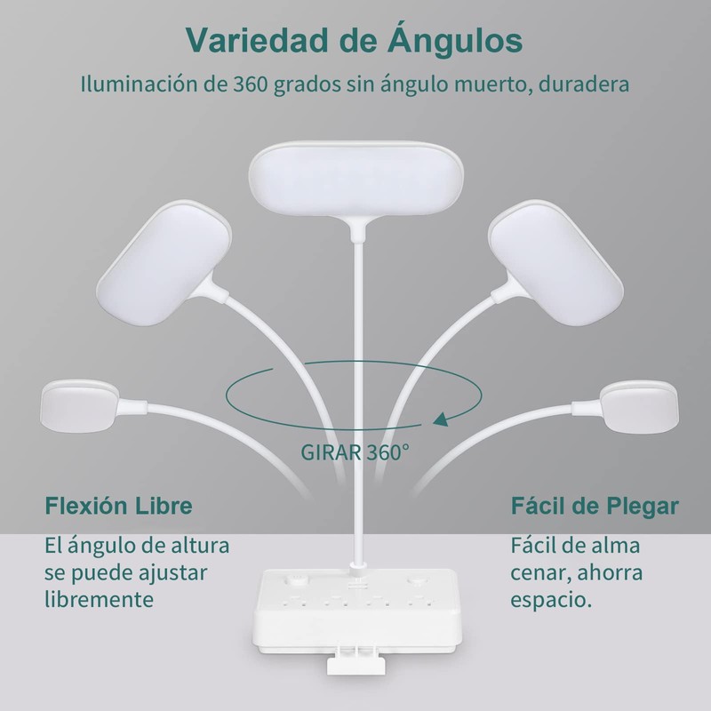 El brazo de la lámpara de mesa se puede ajustar libremente en 360 grados, por lo que puede ajustar la lámpara sin esfuerzo para obtener un ángulo de iluminación y una cobertura ideales.