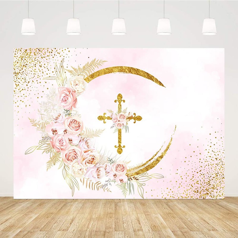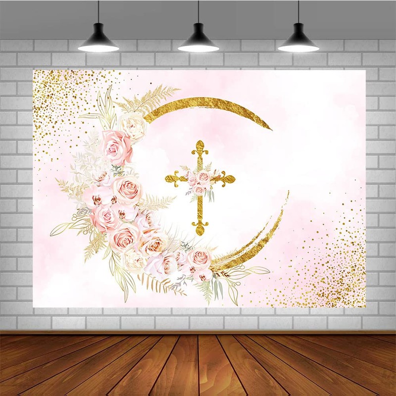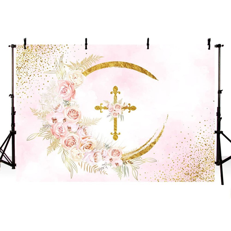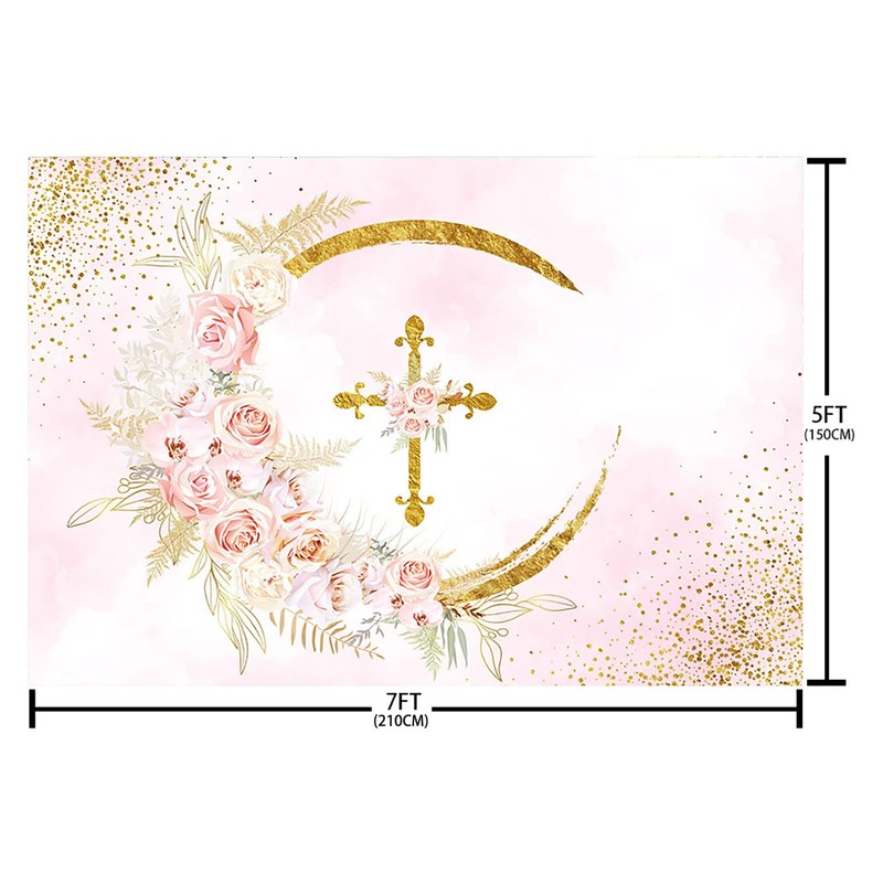Sendy 7x5ft Mi Bautizo Backdrop Mexican Baptism God Bless Party Decorations First Holy Communion Christening Party Banner Boho Baby Shower Pink Floral Photo Studio Props