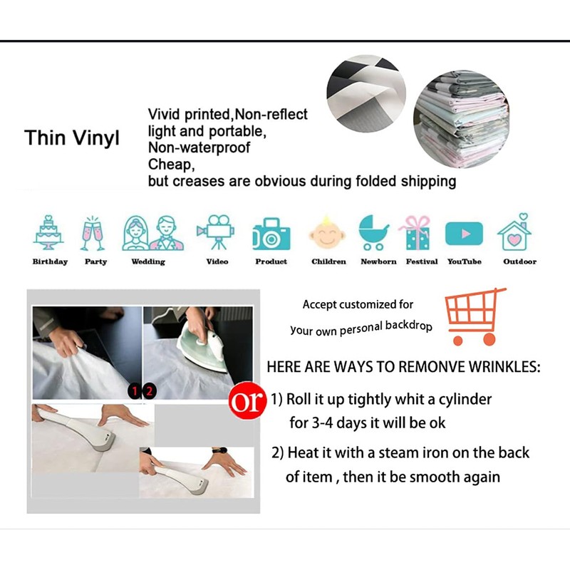 - ღ【WIDE APPLICATIONS】: This photography background can be used as party supplies, photography, pictures, photo booths, home decorations, etc. Can also be used for weddings, newborns, birthdays, baby showers, festivals, graduations, christenings and artistic portraits.