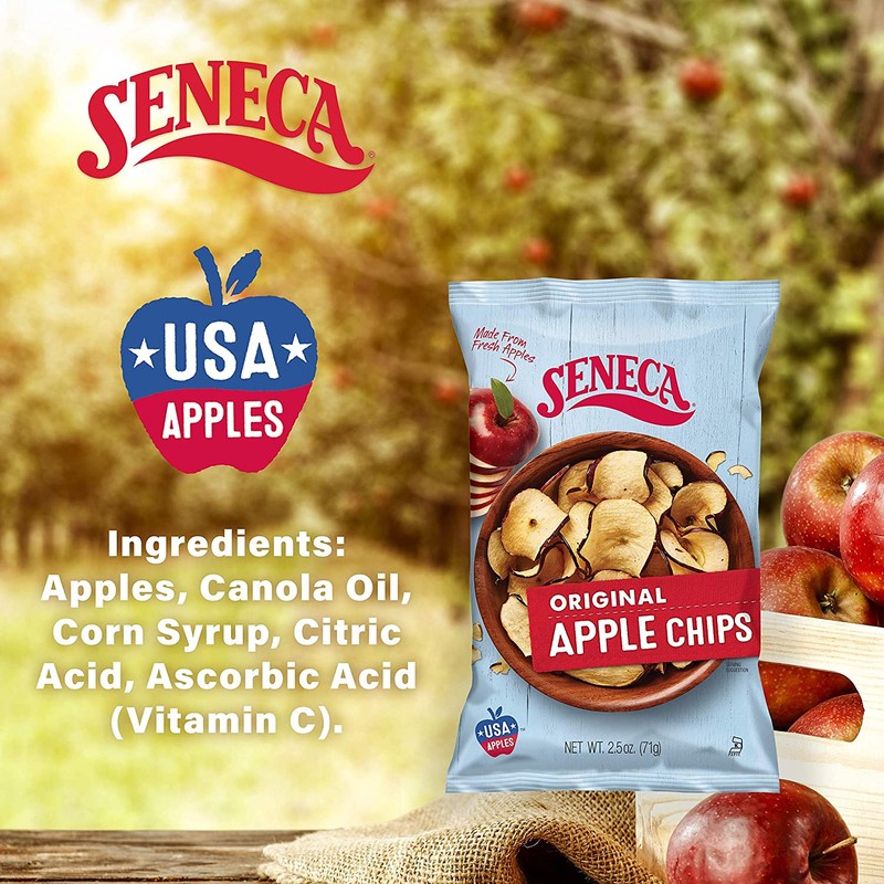 - CRISPED APPLE PERFECTION: When you crave the sweet, crunchy goodness of real apples crisped to perfection - Seneca Original Apple Chips are the only way to satisfy you! Seneca starts with 100% fresh, red, ripe Red Delicious apples handpicked and selected for their firmness and dark, intense crimson red color, refreshingly sweet and juicy taste and crisp texture. Crisped in small batches and then sealed in freshness bags so they are ready for your snacking enjoyment.