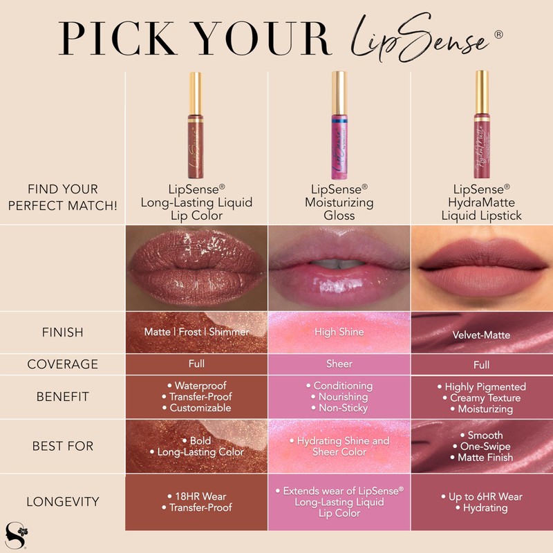 - How to Apply: Use the lip gloss on its own for a gorgeous sheer shine, or layer it over LipSense Liquid Lip Color to boost color and moisture, giving your lips a refined and polished look