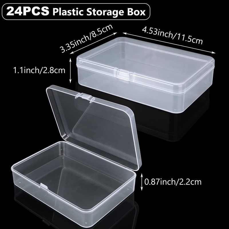 SENENQU 24 Pack Small Clear Plastic Storage Containers Box with Lid, Mini Rectangular Storage Box, Transparent Storage Case Organizer for Bead Pill Candy Craft Jewellery – 4.5 x 3.3 x 1.1 inch