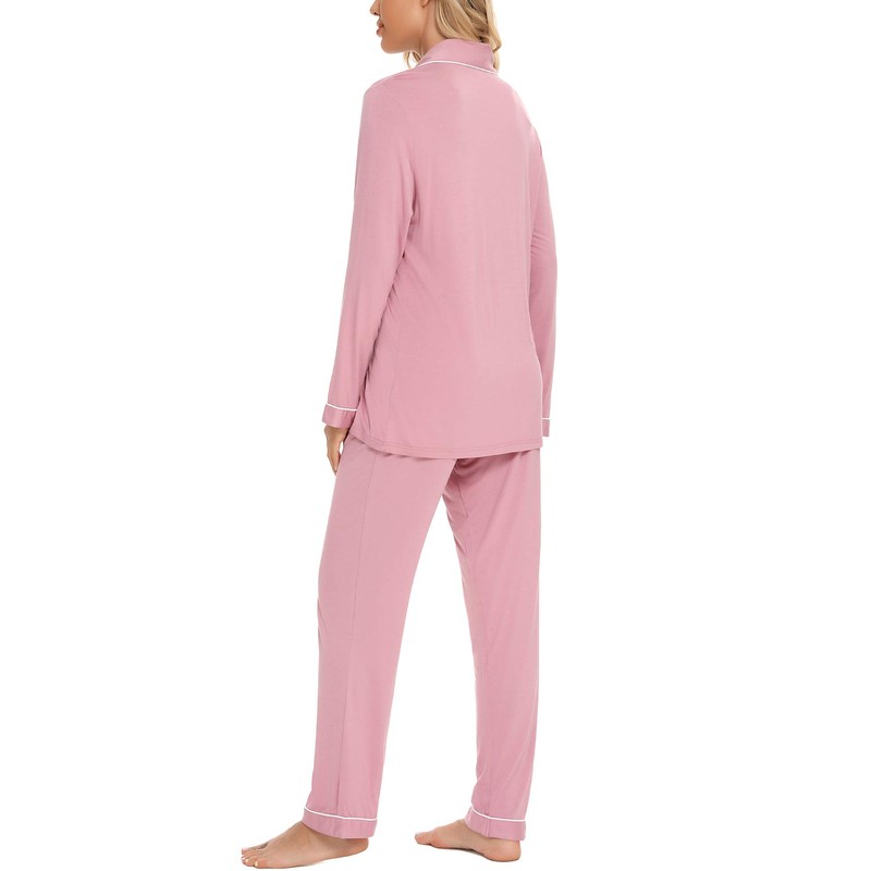 - ❤【Pajama Sets for Women Soft】This long sleeve pajama set is made of 95% Viscose, and 5% Spandex, which is soft, lightweight, breathable, stretchy, and comfortable. This two piece pjs set, button down nightwear set keeps you easeful while sleeping at night, that’s ultra-smooth against the skin so you can enjoy superior comfort.