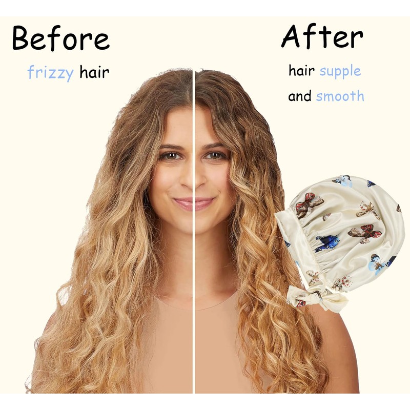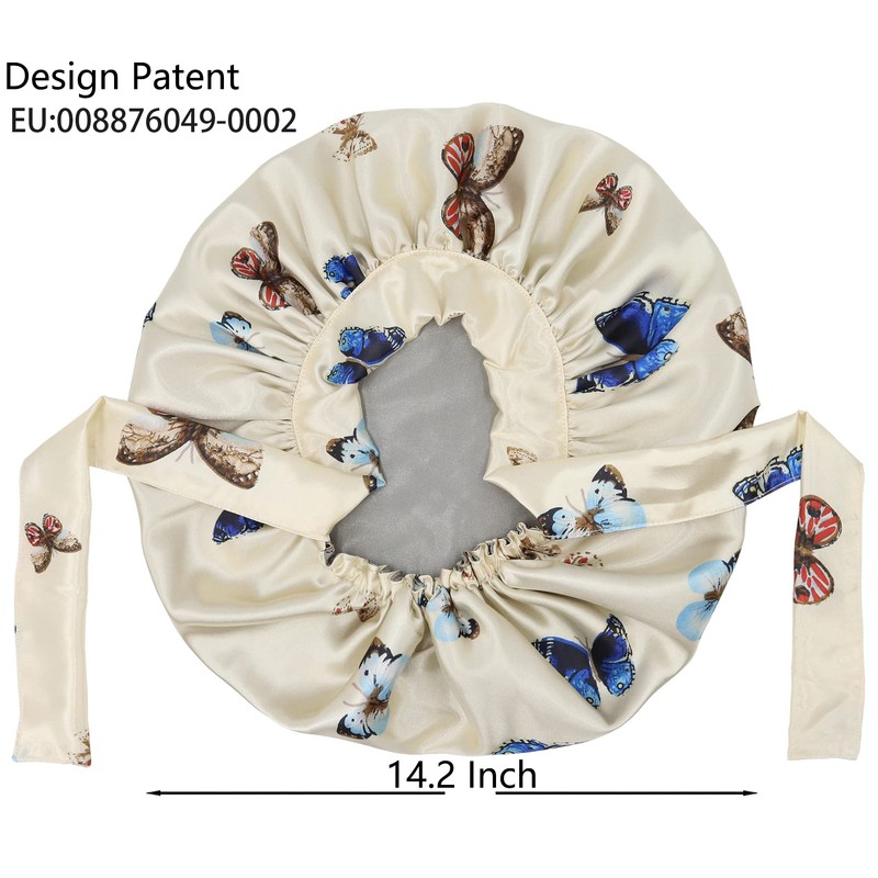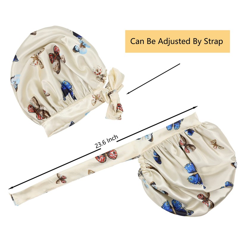 SENGTERM Satin Sleep Cap Double Layer Elastic Satin Bonnet Gorge Hat Wide Silky Band for Black Women with Long and Curly Hair, Butterfly
