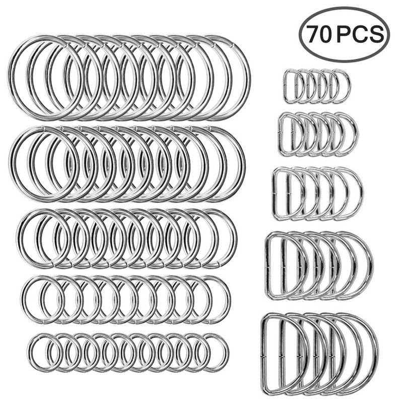 SENHAI 50 Pieces Assorted O-Ring & 20 Pieces Metal D-Ring Versatile for Hardware Craft Projects Sewing Crafts Accessories