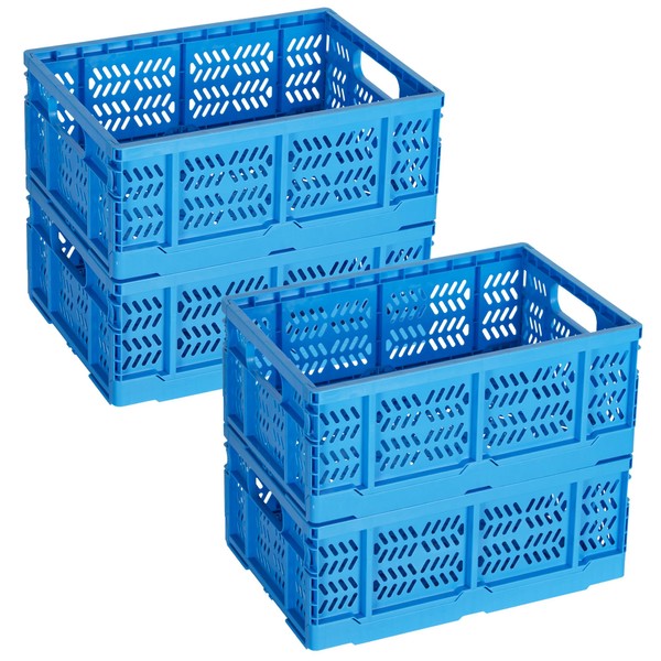 Senhoglb 4-Pack Plastic Storage Baskets for Organizing Groceries Fruit with Handle, Collapsible Milk Crates, 20L Foldable Stackable Storage Bins for Home Office School Trunk, Blue