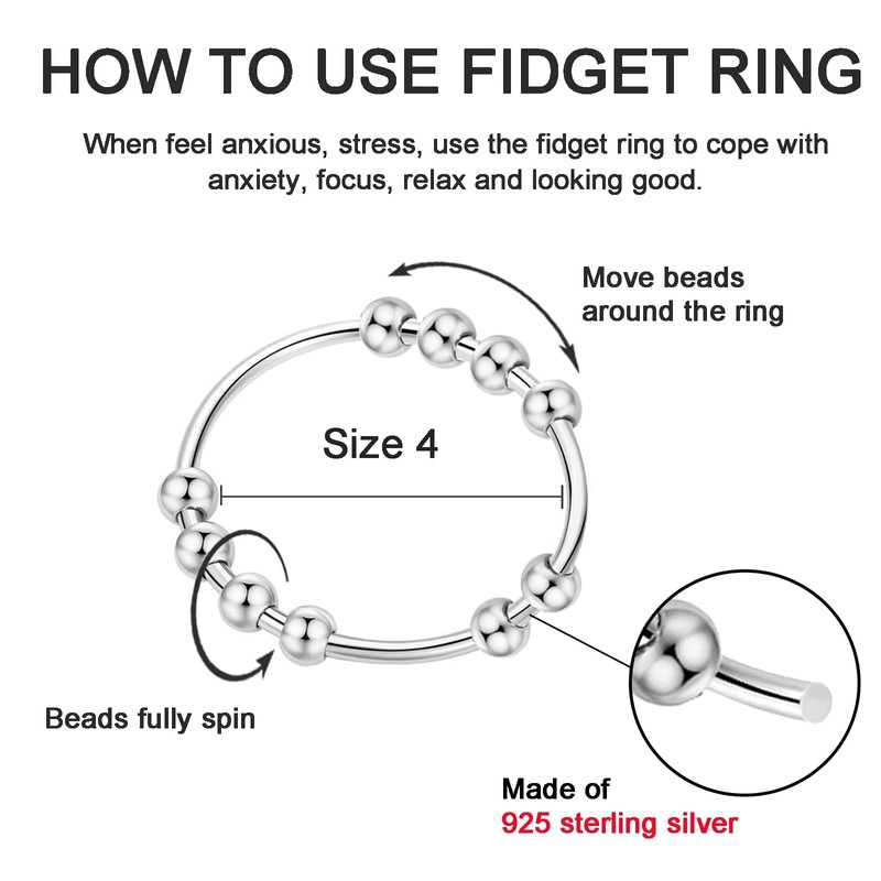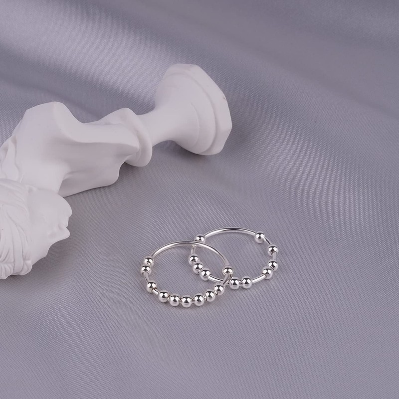 Senidea 925 Sterling Silver Anti-Stress Anxiety Rings, Fidget Anxiety Fidget Beads Ring, Stackable Spinner Rings with Beads Band Ring for Women, Silver