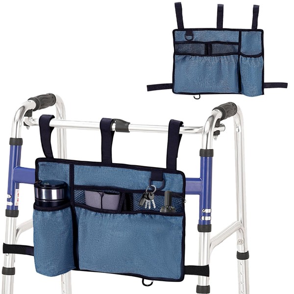 - Light and portable: The adjustable loop buckle makes the bag for walker easily fit all walkers and most rollers, scooters and wheelchairs, 15.74x15.16 inches, with 2 front pockets,2 mesh bags, 1 cup bag, and a back zipper bag, great for carrying some small items