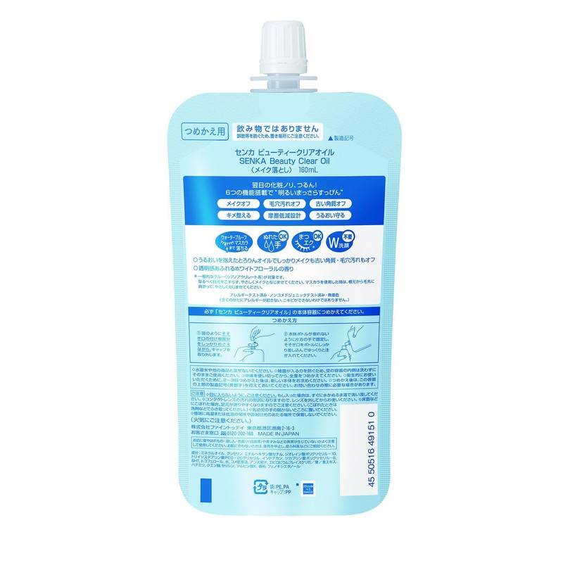 SENKA Beauty Clear Oil, Refill, 6.3 fl oz (160 ml) x 2 + Free Makeup Glue, Skin Cleansing, Exfoliating, Eyelashes OK