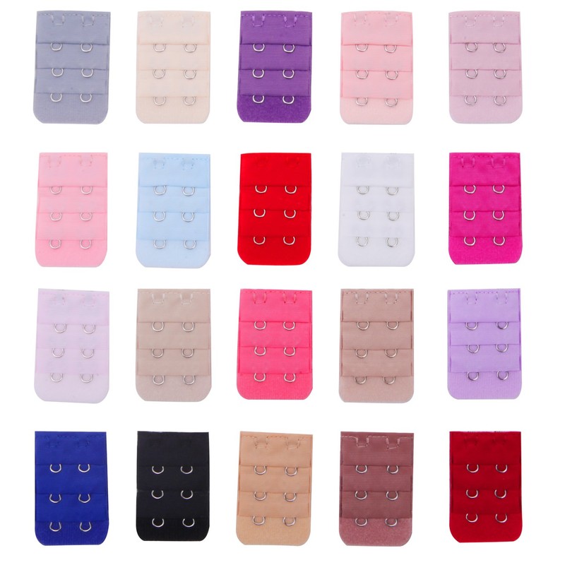 This set of bra band extenders has 20 colours, white, black, pink, beige, purple, red, etc. for 2 and 3 hook bra