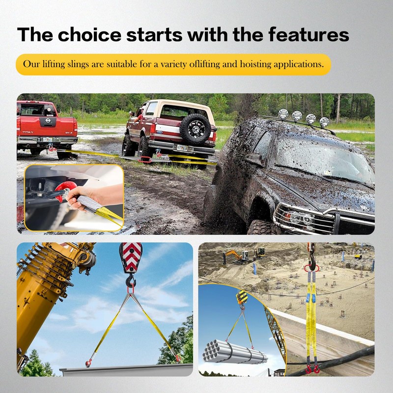 - ✨【Robust Hardware】The sling hardware is constructed from G80 steel, our lifting sling is built to withstand the toughest work environments and ensure long-lasting performance and ensuring they won't deform or break easily.