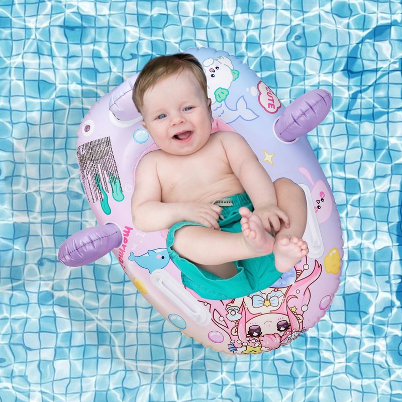 - Mermaid look: The baby swim ring impresses with a cute pink mermaid design in cartoon style, ideal for children. Two leg openings at the bottom allow the child to sit comfortably and enjoy the safe, fun floating on the water. A great gift for little water rats!