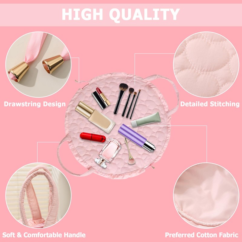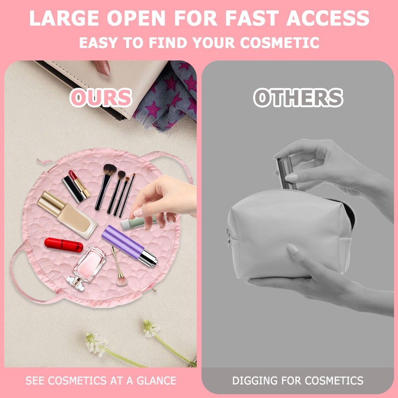 - ❤️【QUICK PACKING】The cosmetic bag adopts a drawstring design, which is an excellent storage tool for lazy people. After putting on makeup, just pull the rope to quickly pack the cosmetics. You no longer need to put them one by one into your makeup bag. It can hold all the cosmetics you need for a weekend or a week-long trip.