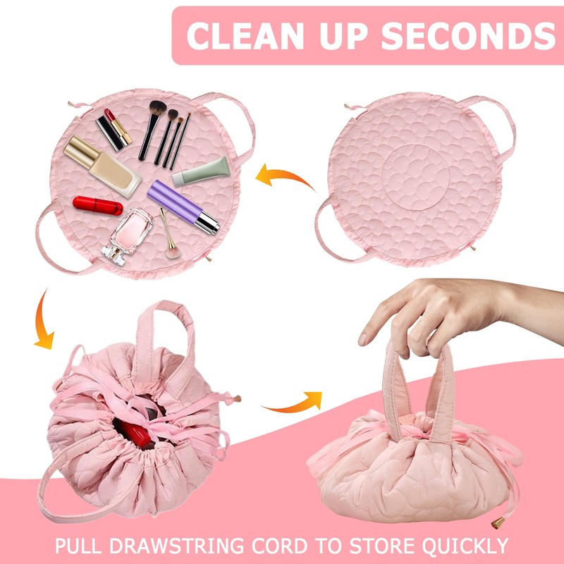 SENLINLIN Lazy Drawstring Makeup Bags, Hot Large-Capacity Travel Cosmetic Pouch, Portable Quick Pack Lazy Drawstring Cosmetic Bag Storage Organiser Handbag for Women Girl Travel Toiletry Gift