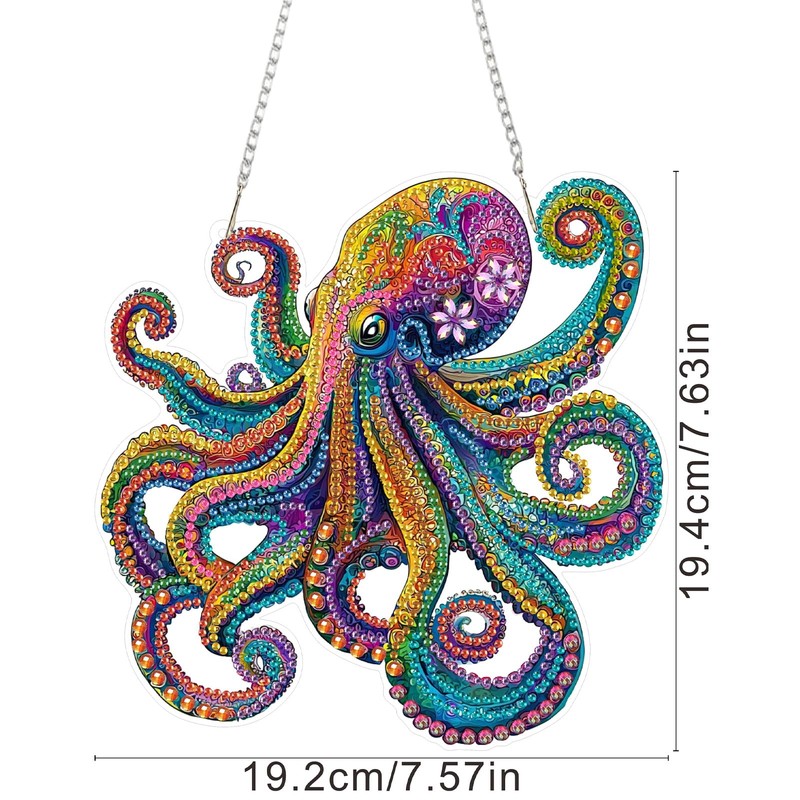 SENQAO Octopus Diamond Art Hanging Kit for Adult, Special Shaped Rhinestone, DIY Acrylic 5D Diamond Art Painting Window Pendants Home Garden Wall Hanging Kits Hanging Ornament