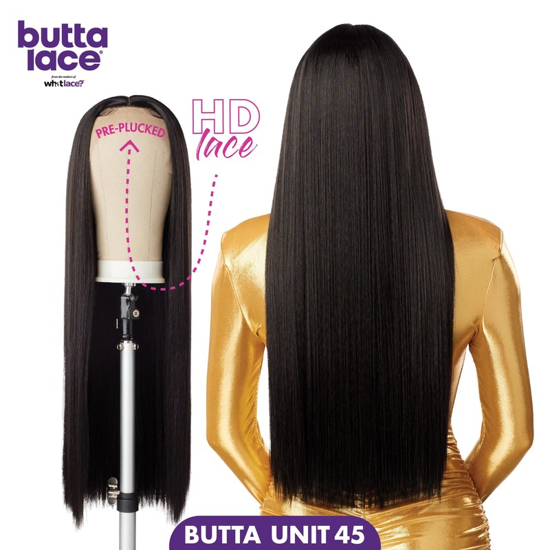 Sensationnel Butta Lace brand is known for its virtually undetectable hd lace that seamlessly melts like butter into most skin tones. It?s a great option for beginners and longtime wig wearers alike who are looking for a quick and easy application. Our butta lace units have a larger parting area in the shape of a triangle that gives you more parting space. Butta lace also features a wide 5 inch deep part, signature what lace natural pre-plucked hairline, and hd lace with baby hairs. Our butta lace wigs feature ear to ear lace, wider parting, and are made with synthetic fibers that give a natural look to hair and comes in an array of basic and special flamboyage and money piece colors.