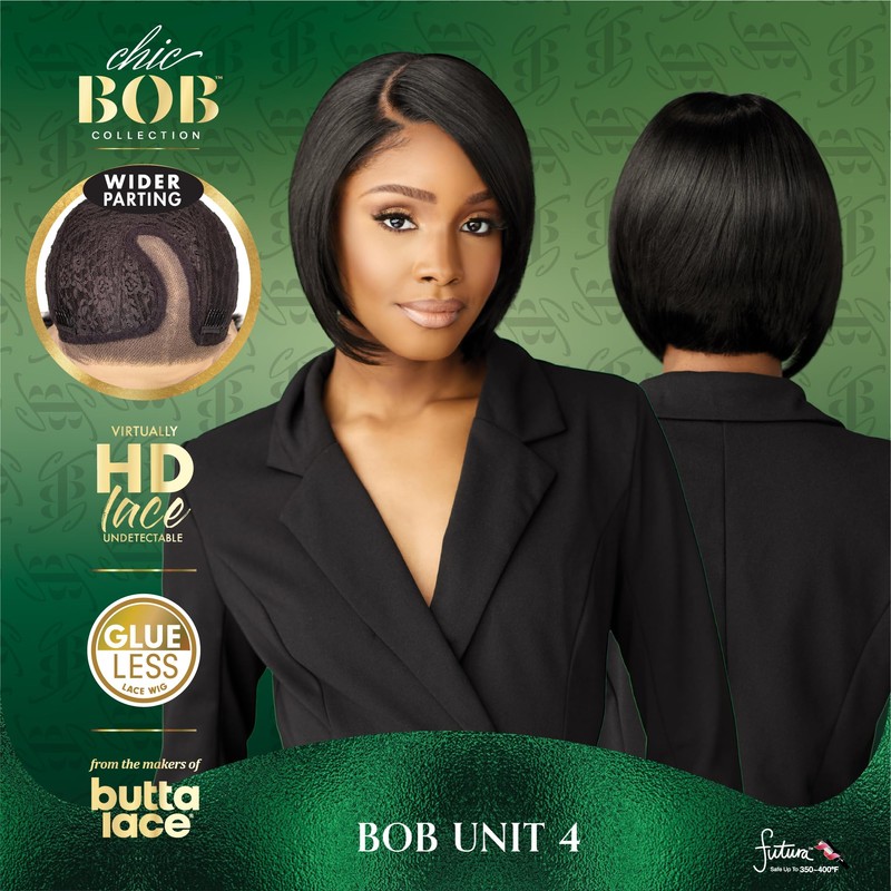 Sensationnel Chic Bob is from the members of Butta lace. Chicbob is known for its virtually undetectable hd lace that seamlessly melts like butter into most skin tones. It is a great option for beginners and longtime wig wearers alike who are looking for a quick and easy application. Our chic bob lace units have a larger parting area in the shape of a triangle that gives you more parting space. Butta ChicBob lace also features a wide 5 inch deep part, signature what lace natural pre-plucked hairline, and hd lace with baby hairs. Our butta chicbob lace wigs feature ear to ear lace, wider parting, and are made with synthetic fibers that give a natural look to hair and comes in an array of basic and special flamboyage and champagne blonde colors.