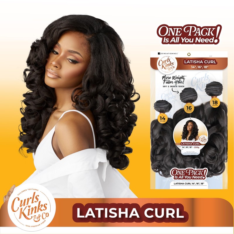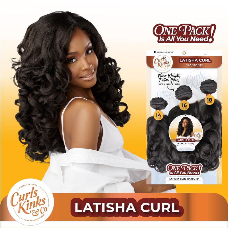 - Brand : Sensationnel Curls kinks and Co bundles multi length synthetic weave sew in and pony tail styles hair extension