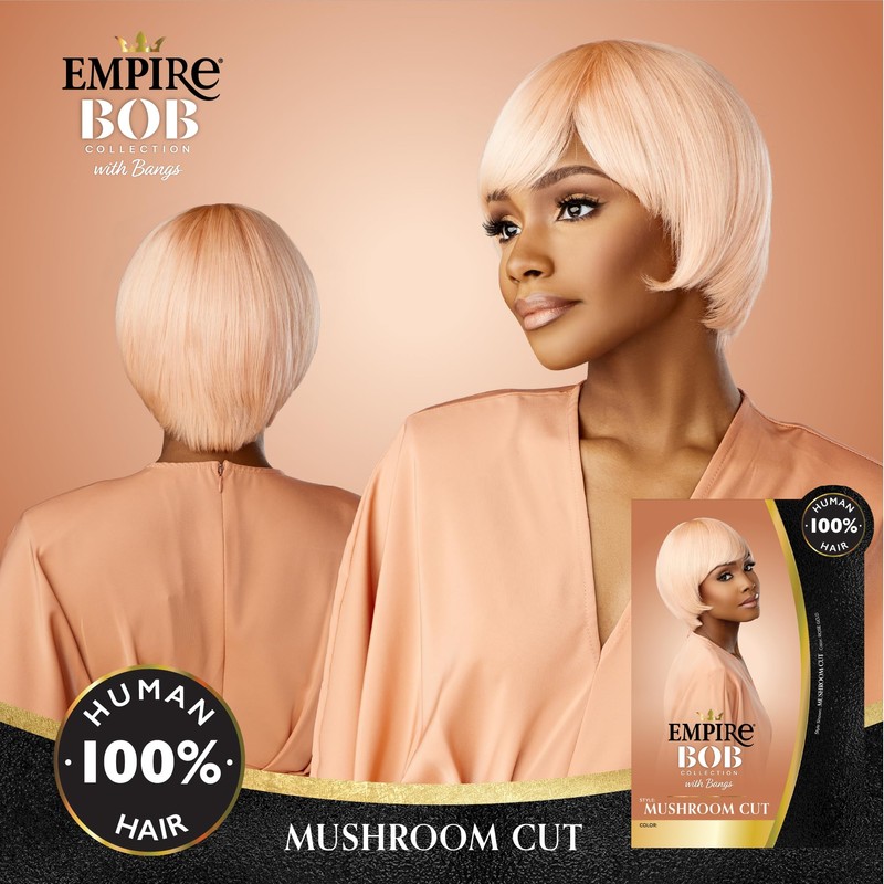 Sensationnel Empire Bob Humanhair Wig - Mushroom Cut Face Framing Mesh Cap for Comfort With Bangs (GOLDENBLONDE)