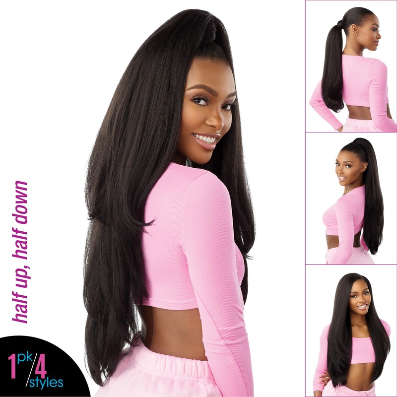 - Brand : Sensationnel Instant Up and down unique 4 style in 1 solution with a half wig and pony tail wrap in one single pack.