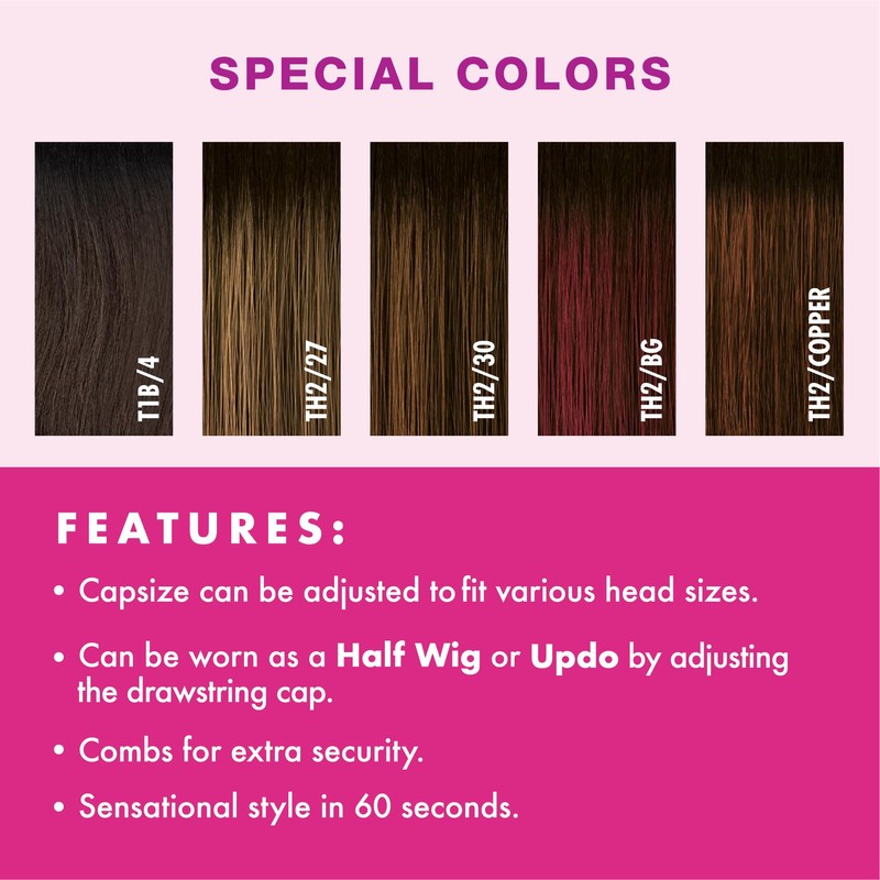 Sensationnel Instant Weave Half wig - synthetic half wig or updo cap with adjustable drawstring for seamless hair blending - Instant Weave IWD 19 (TH2/BG)